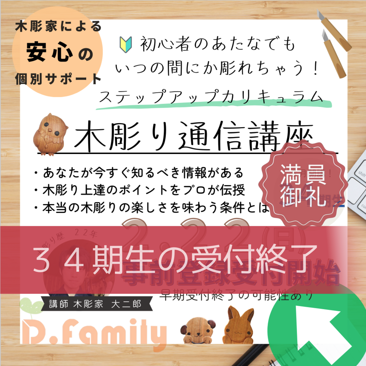 新年あけましておめでとうございます! 2026年が始まりましたね! 私ごとですが、こういう節目ってすごく大事だなぁって感じながら年末年始を実家で過ごしていました。 年末っていう1つの終わりがあることで、それまでにやりたいことが見えてきたし、... 木彫り教室・通信講座の生徒さんの声