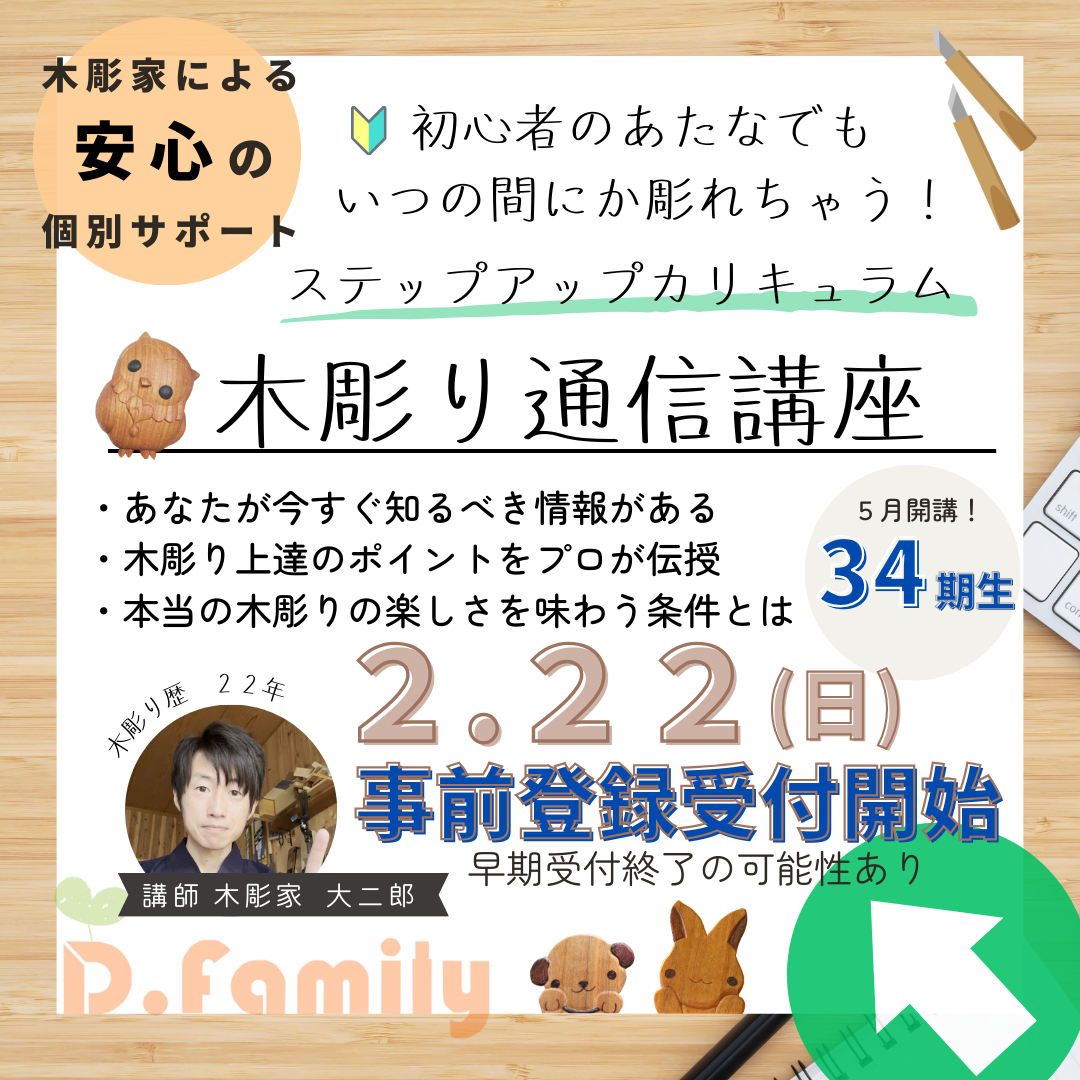 知らないと差が付く無料木彫り通信講座の登録受付中!詳細はこちらへ!
