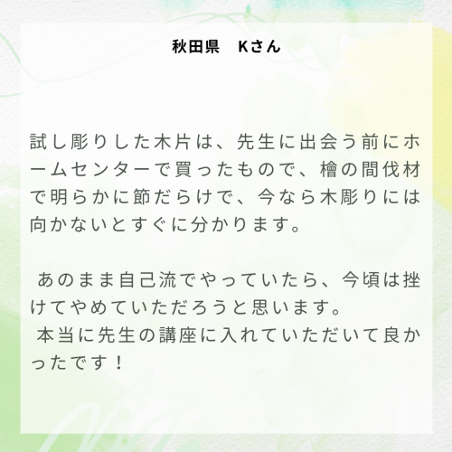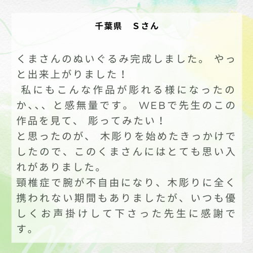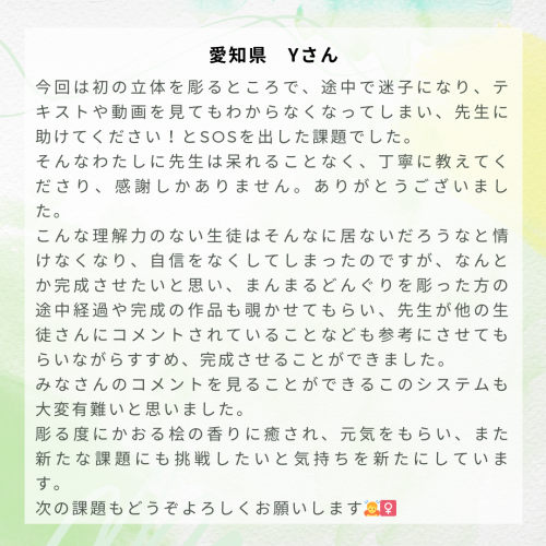 木彫り入門通信講座web「D.Family」16期生【吉岡さん用】