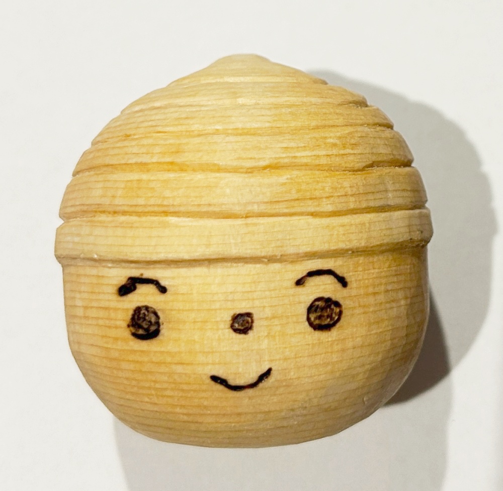 顔を入れたらだんだんかわいく思えてきて、自分にも球体が彫れたのだと完成の喜びもひとしおです。 先生の丁寧なご指導と励ましのおかげでなんとか初級を終える事ができました。 本当にありがとうございました!